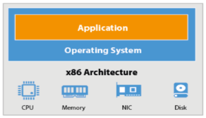 Komponen Server tradisional terdiri dari server fisik yang menjalankan sistem operasi dan aplikasi.