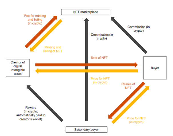 - Marketplace: sebagai perantara dan penyedia nilai tambah untuk ekosistem NFT, diperlukan pertimbangan yang cermat mengenai yurisdiksi dimana marketplace dikenai pajak.