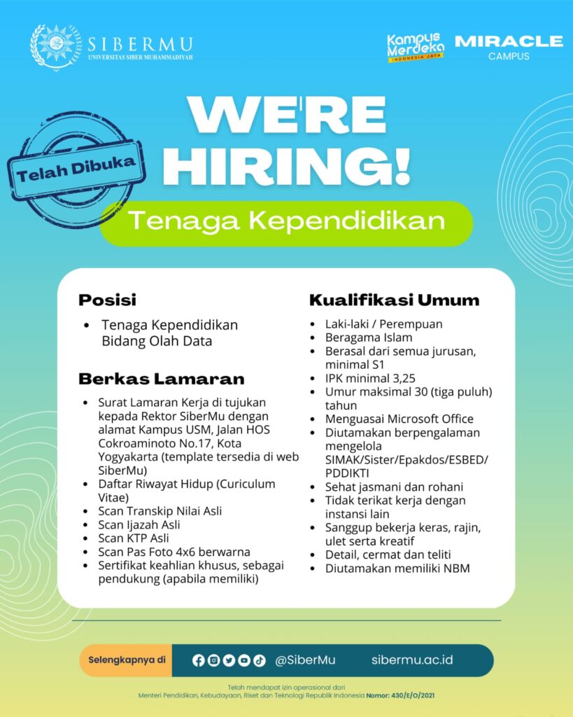Pengumuman Seleksi Administrasi Rekrutmen Tenaga Kependidikan Olah Data SiberMu